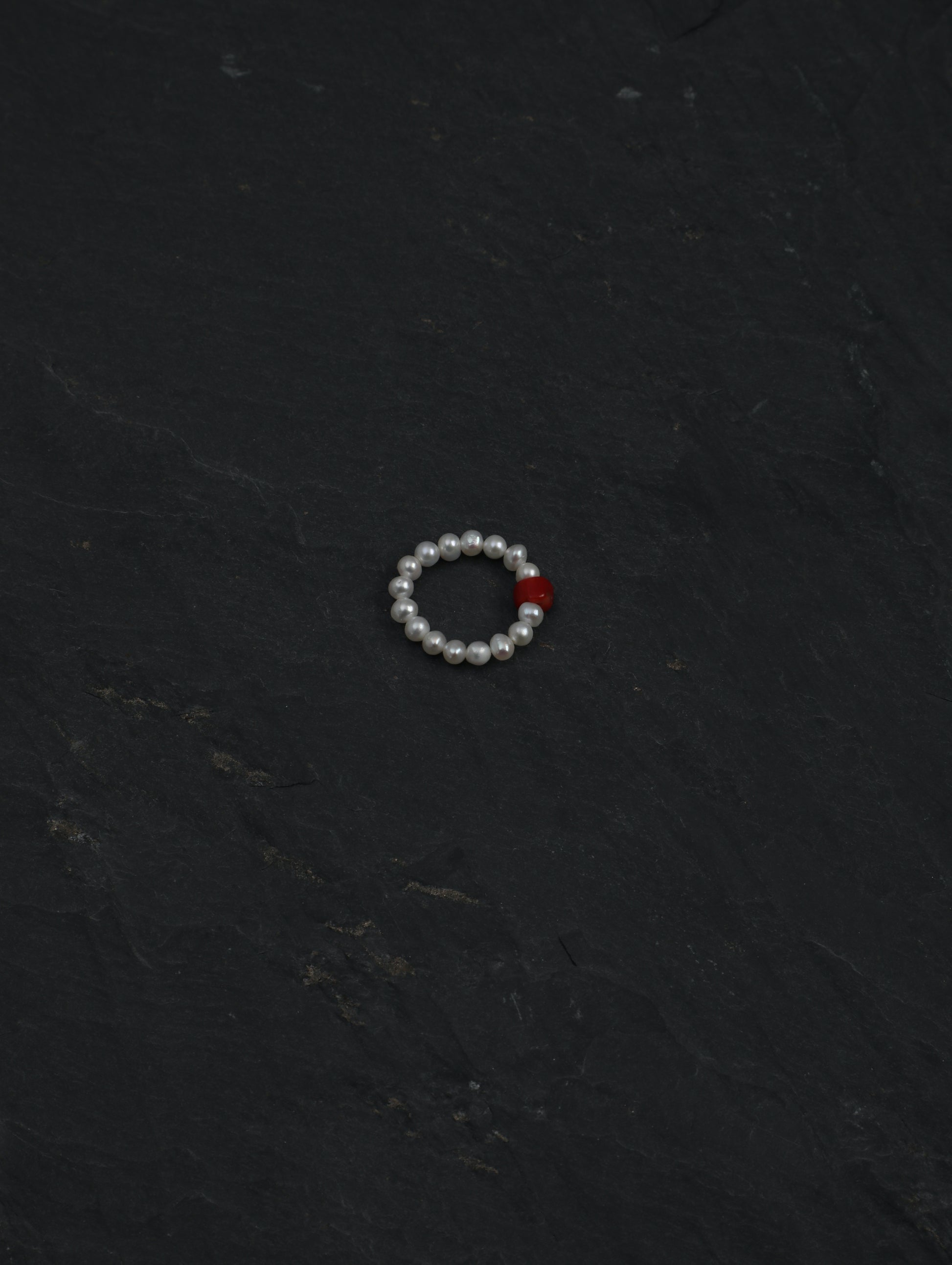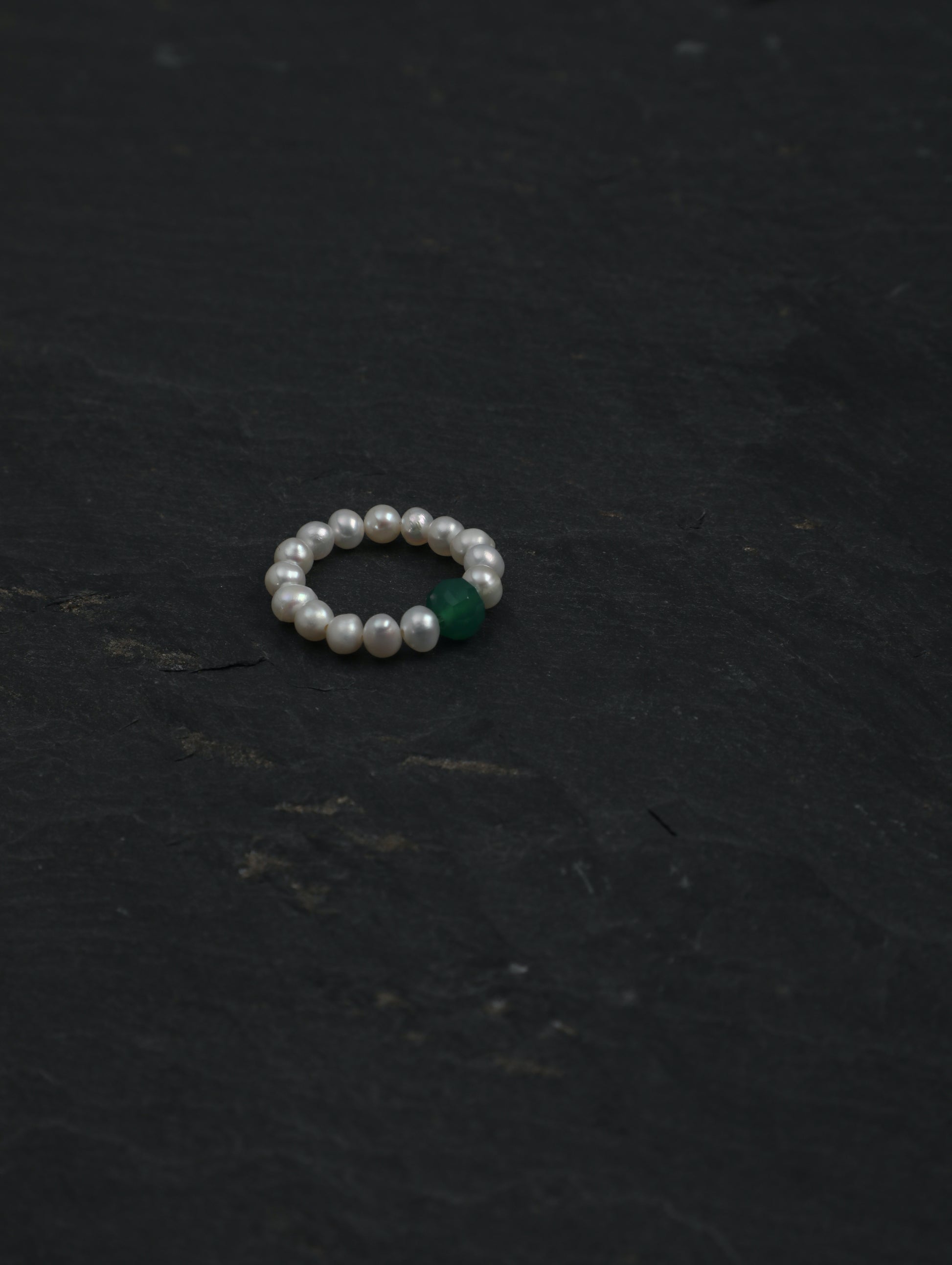 Each ring features 4mm natural freshwater pearls arranged in a delicate, flexible band. At its center, a carefully selected natural stone adds quiet character and meaning, reflecting one of the five classical elements.
